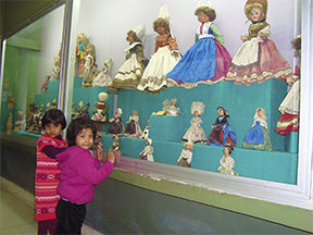 Housed in the building of the Children’s Book Trust on Bahadur Shah Zafar Marg, New Delhi, the Museum occupies a floor area of 5184.5 sq. feet--a portion of the first floor. A separate entrance with a stately winding staircase leads up to a foyer. Inside, the Museum is divided into two equal halves. The two sections have over 160 glass cases, 1000 ft. long, mounted on the walls. One section has exhibits from European countries, the U.K., the U.S.A, Australia, New Zealand, and the Commonwealth of Independent States, and the other from Asian countries, the Middle East, Africa and India. There are also special displays, besides a representative collection from the over 150 kinds of authentic Indian costume dolls made at the Dolls Workshop attached to the Museum.